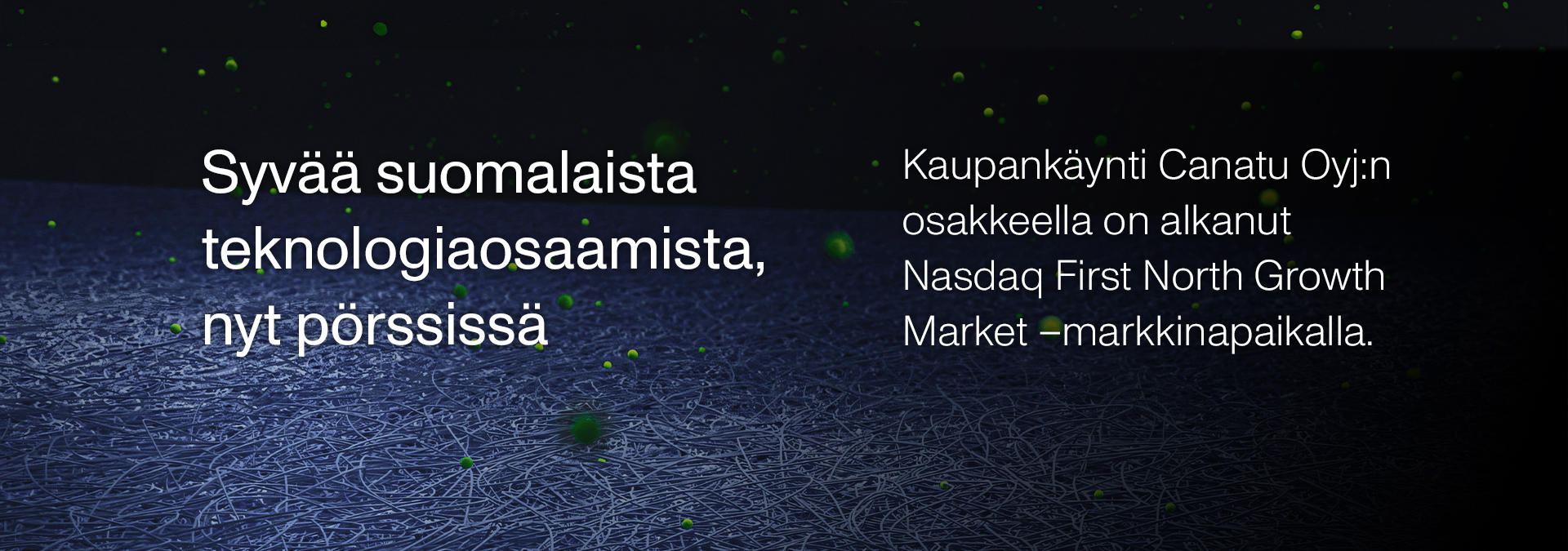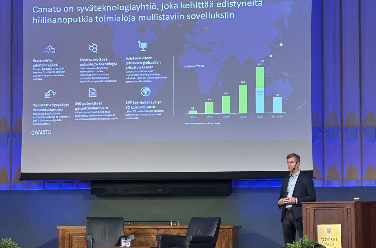 Canatu on syväteknologiayhtiö, jolla on laajaa kasvupotentiaalia hiilinanoputkisovellusten teknologia- alustana. Yhtiö toimii kasvavilla markkinoilla, sen viime vuosien kasvu on ollut kovaa ja sen asiakkailleen tuottama korkea lisäarvo on näkynyt hyvinä bruttokatteina. Canatun liiketoimintamalli on skaalautuva, sillä on todistettu kyvykkyys massatuotantoon, kokenut johto ja kunnianhimoinen yrityskulttuuri. Lue lisää yhtiön vahvuuksista.