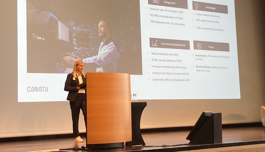 This year, Canatu had the pleasure of presenting the most advanced transparent film heater for ADAS at the Folien + Fahrzeug / Plastic Films in Mobility Conference 2023 held from April 26th-27th, 2023 in Würzburg, Germany. The event attracted 170 visitors uniting forerunner companies within the automotive industry covering all aspects of film technology —from advanced materials and film production to associated printing, forming and in-molding technologies and other integration processes.